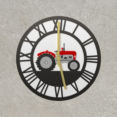This Vintage Red Tractor metal clock is the perfect blend of rustic charm and practicality, making it an ideal gift for tractor enthusiasts or a statement piece for your home, office, or workshop. Handmade and laser cut in our Monea workshop, this clock is built to last with high-quality materials and a durable powder-coated finish.