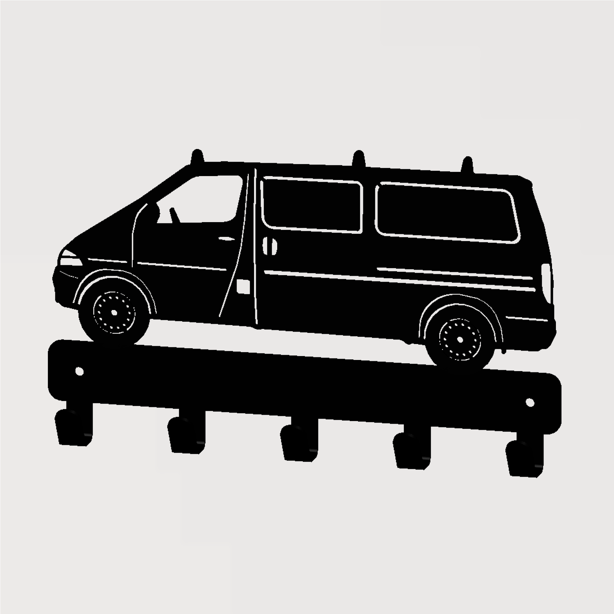 A customisable metal wall hook featuring a van design, handmade and laser cut in our Monea workshop. The perfect gift for any occasion or a stylish addition to your home.